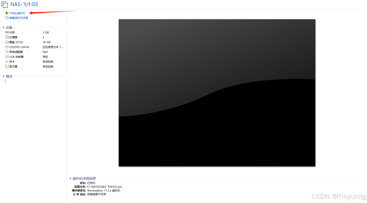 点击开启此虚拟机(物理机就是开机,选择从U盘启动,启动选项选择飞牛私有云 fnOS启动U盘)
