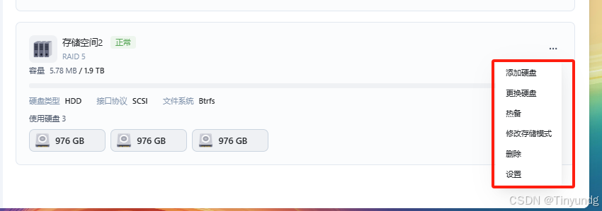 此外,还支持,添加硬盘、更换硬盘、添加热备,以及修改存储模式