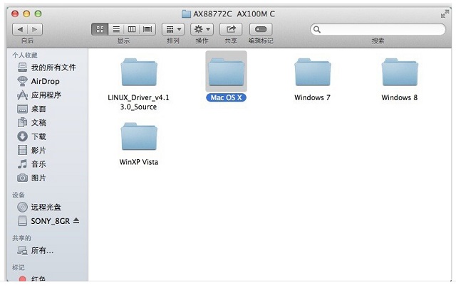 第一步:打开驱动文件夹,打开mac osx文件夹,双击AX88772.dmg