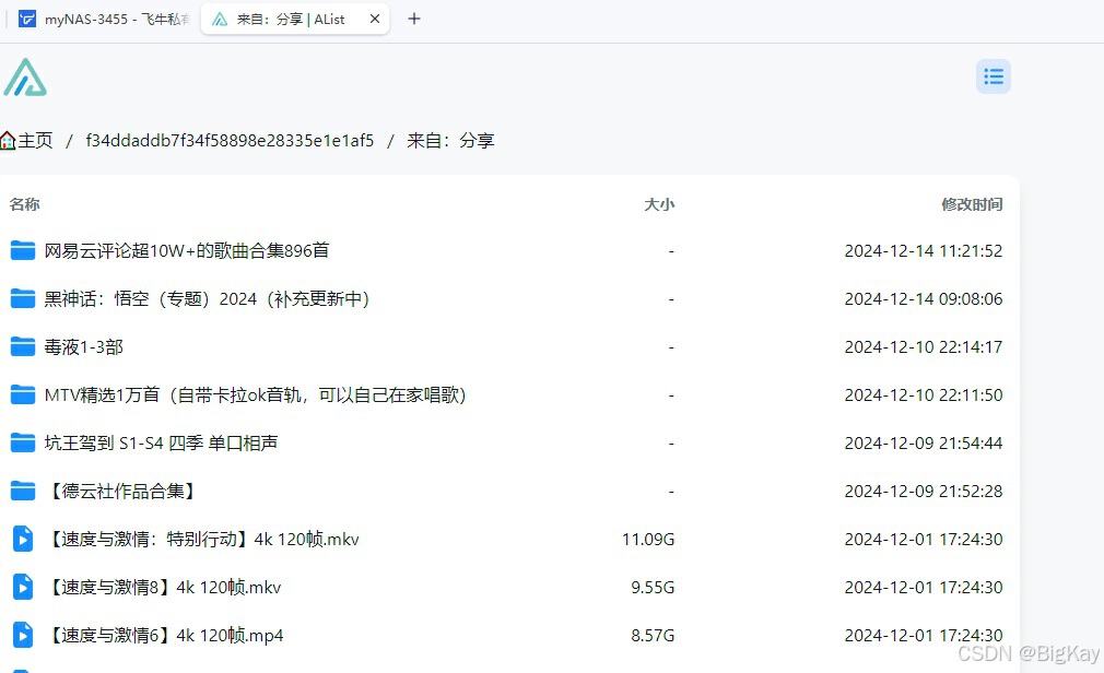 打开alist主页,找到夸克网盘挂载的目录,找到需要下载的文件 复制 到群晖路径,即实现下载到本地的功能了