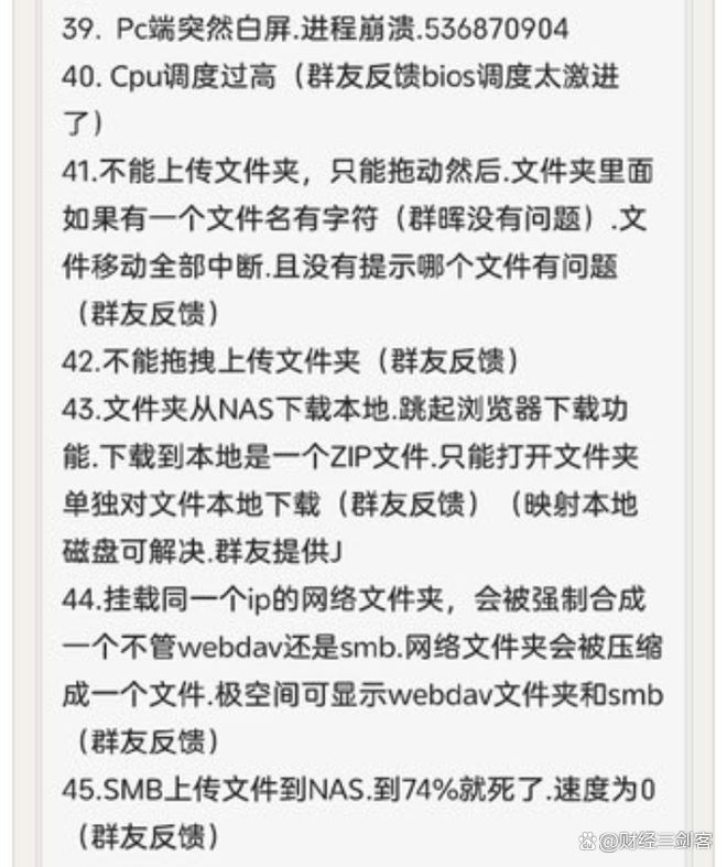 甚至有用户给总结出了40多项问题,是的,你没看错,40+问题。