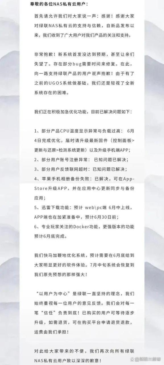 6月3日晚上绿联被喷的把新 NAS 京东天猫全部下架,并发布了致歉信。