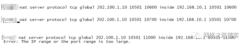比如模拟器或者博主真机的6307E的低端系列测试的结果是一次性只能映射64个,超过64个提示映射的范围太大,而且会发现这些系列 nat server的条目也差不多在64个左右,多了就不让创建了,而性能好一些的创建范围在200个都没问题,但是在多就不行了,博主这里也没法给一个具体值,只能自己实践下测试或者是问华为的400。