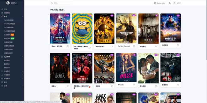 然后进入主页,可以看到精美的海报墙。然后复制API进入nas-tools,选择媒体服务器,选择Jellyfin。