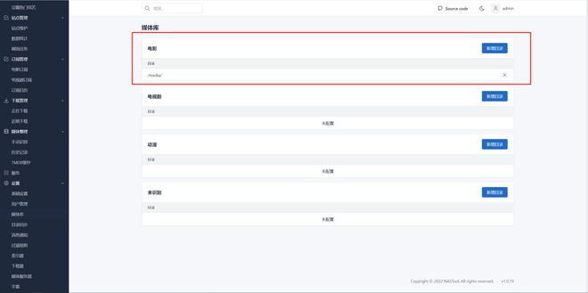 接下来,进入“设置”→“媒体库”,设置媒体文件夹。电影选择meida。