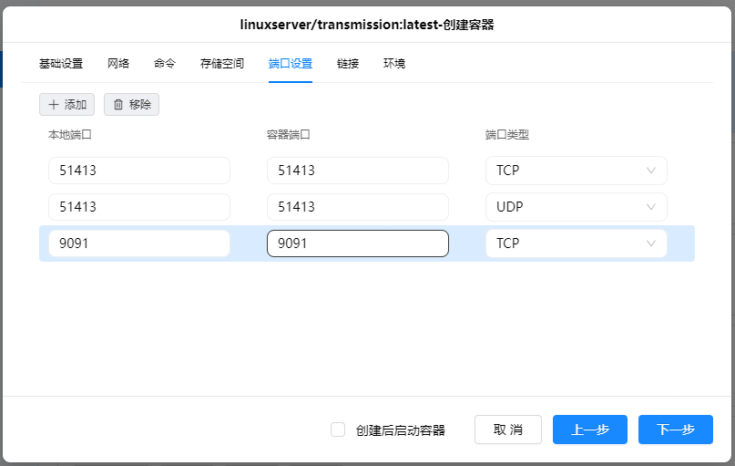 注意:若后续修改51413 端口,则需要重新编辑容器这个端口为新端口。