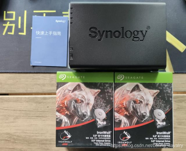 下图是DS218+刚买来的样子,两块NAS硬盘,一直稳定服务中: