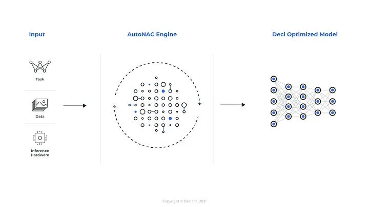 您可以利用AutoNAC™引擎输入任务、数据属性(无需访问数据)、推理设置和性能目标。该引擎将引导您找到最适合在您的独特应用中在精度和推理速度之间取得平衡的架构。除了考虑数据和硬件外,AutoNAC引擎还考虑推理堆栈中的其他组件,包括量化和编译器。