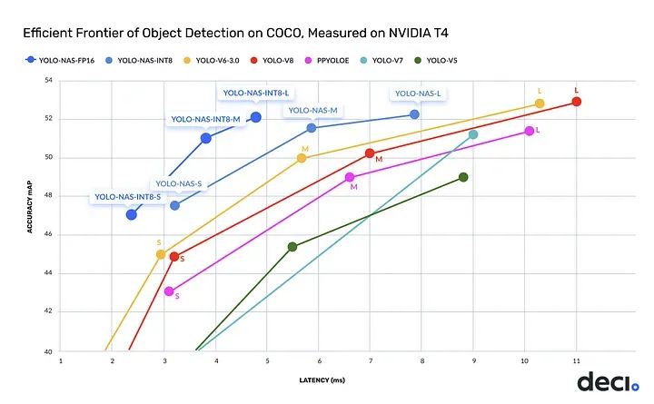 Deci的AutoNAC神经架构搜索技术使得YOLO-NAS模型能够实现卓越的速度和准确性。该模型在市场上所有目标检测模型中脱颖而出,提供了准确性和延迟之间的最佳权衡。YOLO-NAS可以进行量化,并且可以使用TensorRT进行部署,使其完全适用于生产环境。