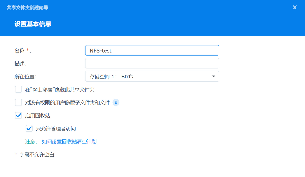 步骤3. 设置名称、描述(可选)并指定共享文件夹的位置,单击下一步以配置加密和其他高级设置。完成后,单击“应用”。