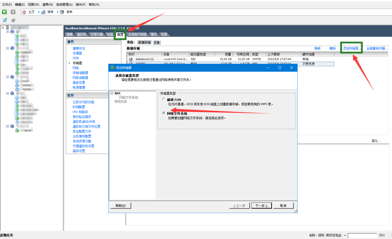 “我的本地空间不是很多,虚拟机占了我很多空间,但是我有一个NAS,所以我想问一下有没有办法可以让VMware ESXi添加NAS存储来扩展空间?”