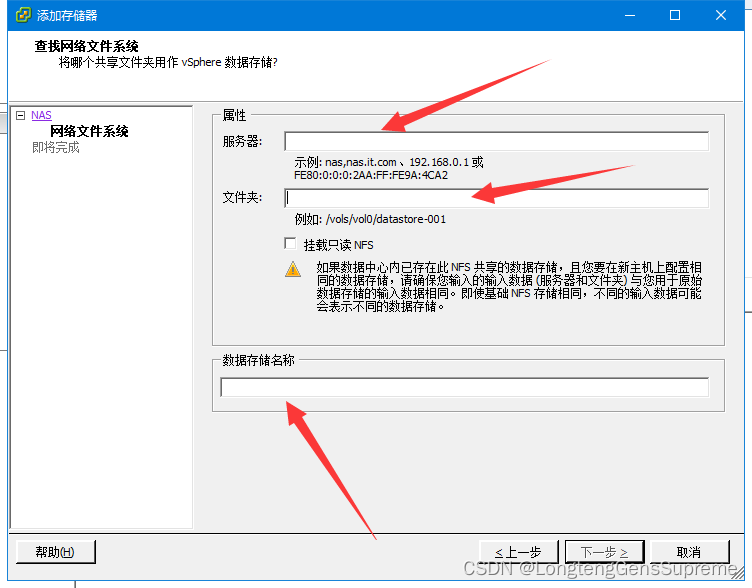 因此,如果要将ESXi上的NAS添加为数据存储,则需要根据设备供应商的支持,在网络基础架构中使用相关协议(如NFS、CIFS、SMB、FTP、SFTP…)配置NAS设备。然后将NAS共享文件夹装载到VMware ESXi服务器上。