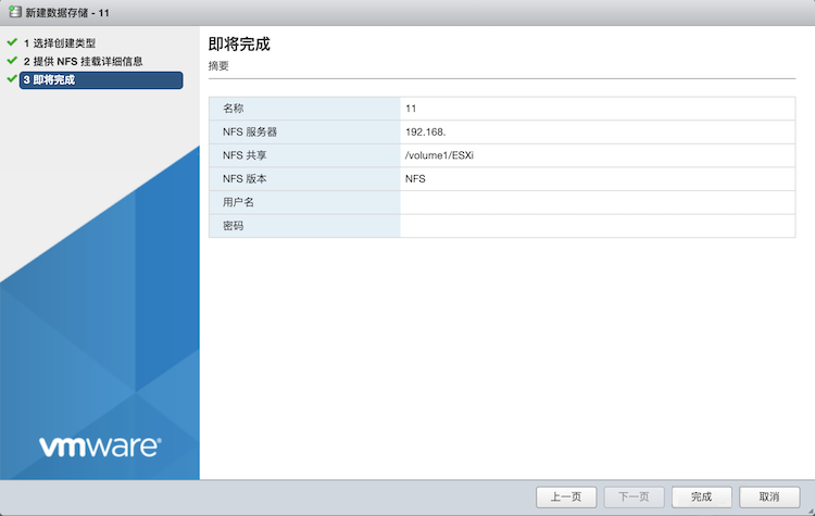 注意:下方的装载路径请您复制下来,后面在ESXi添加NAS存储时会用到。