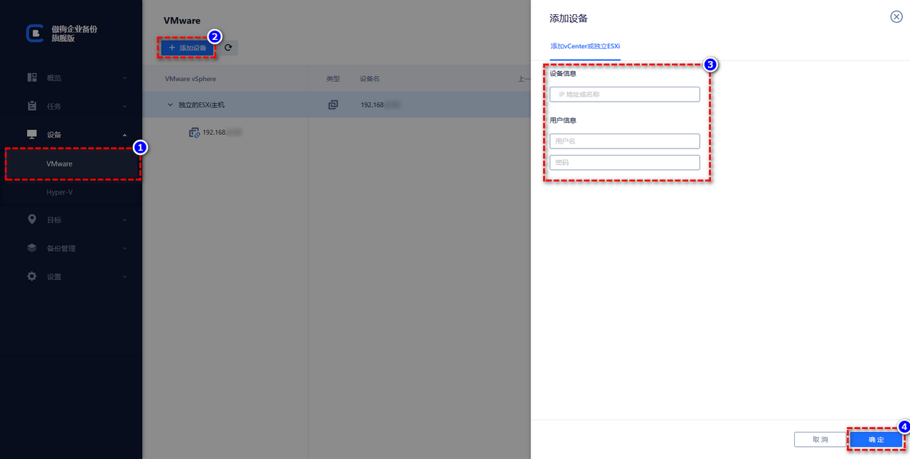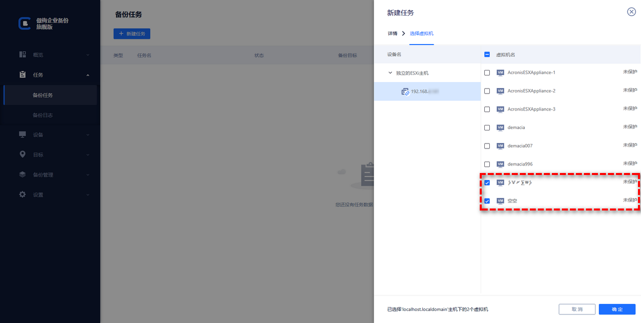 🔎 设备:添加您想要备份的虚拟机,然后点击“确定”。