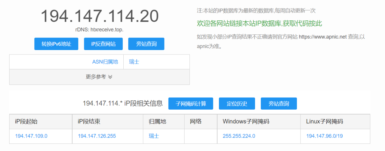 在网上用ip解析发现是瑞士