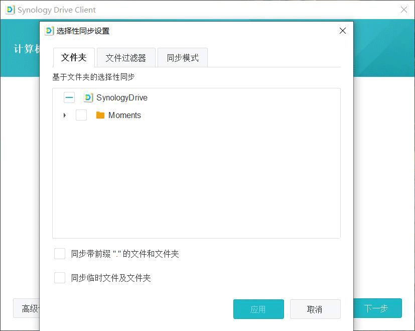 初次使用,需要先下载 Synology Drive套件,并且启用家目录服务,这个服务在用户账号-高级设置中开启。