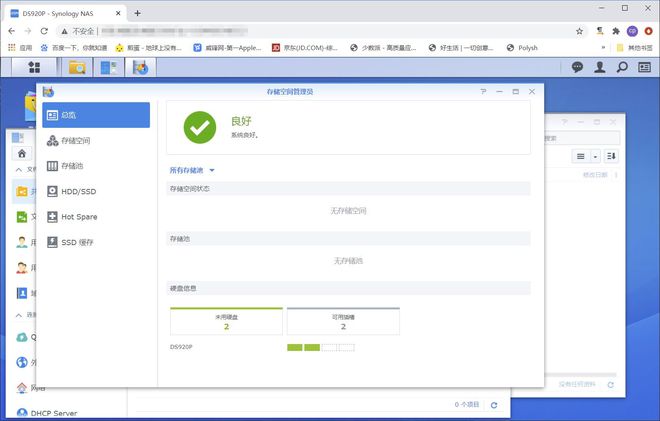 我们安装好系统后要进入群晖添加存储池,组建对应的磁盘阵列,以及划分存储空间,否则就是空荡荡的,什么也做不了,属于无存储空间、无存储池状态。
