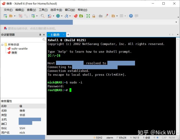利用Xshell等工具,连接到群晖nas,具体操作方式可自行百度。如果有问题欢迎在下面留言