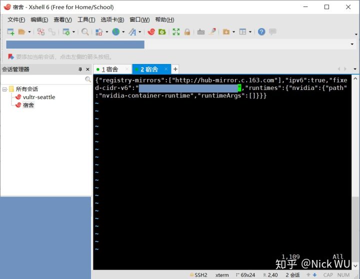 这里可以看到我设置了docker的镜像地址:http://hub-mirror.c.163.com,为了开启ipv6功能,我们要加入以下代码: