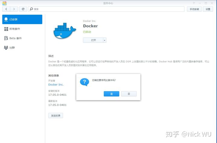 小技巧,这里不用重启整个nas,可以在套件中心重启docker