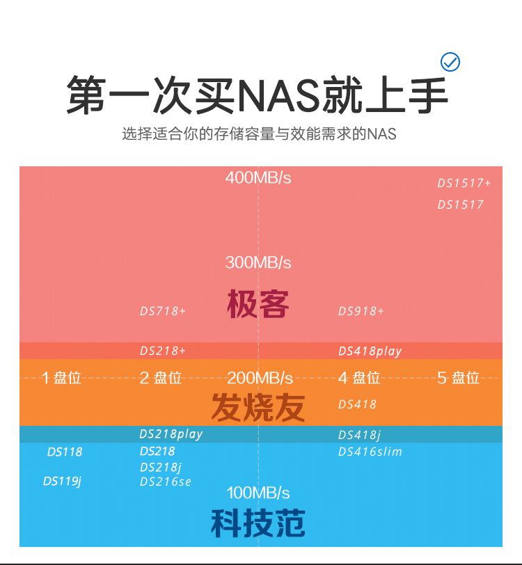 有多少数据决定你要买多大容量和多少数量的硬盘,然后决定买几盘位的群晖NAS。而2盘位以上的机型可以支持RAID,进而保护数据。什么是RAID?戳这里。