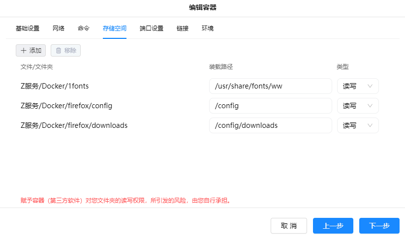 “/config/downloads”:用于额外映射一个特定区域的下载文件夹,浏览器下载到此文件的数据,都会在对应的本地磁盘找到;