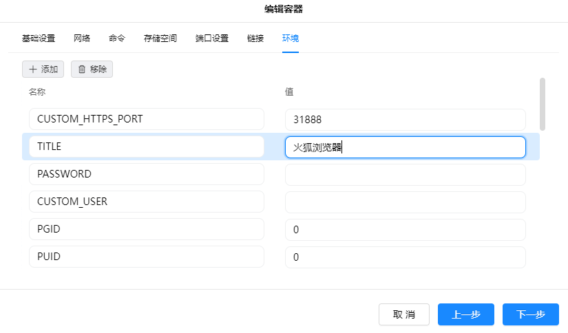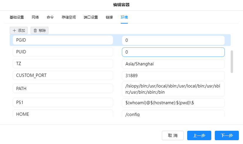因为host模式下所有端口都可用,所以这里必须对“CUSTOM_PORT”和“CUSTOM_HTTPS_PORT”变量进行修改,避免和其他占用“3000”和“3001”端口的容器冲突导致无法启动;