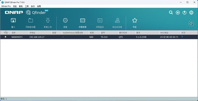 T216的初始化,需要借助电脑端的qnap finder软件实现,下载安装之后,即可看到内网的设备▽