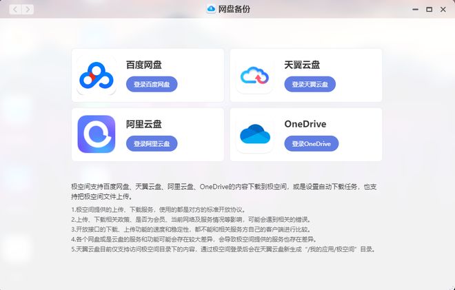 但是,正如你看到的,里面列出来的云盘,对于绝大多数用户来说,能用到的大概也就只有一个百度了,而且操作略显繁琐。