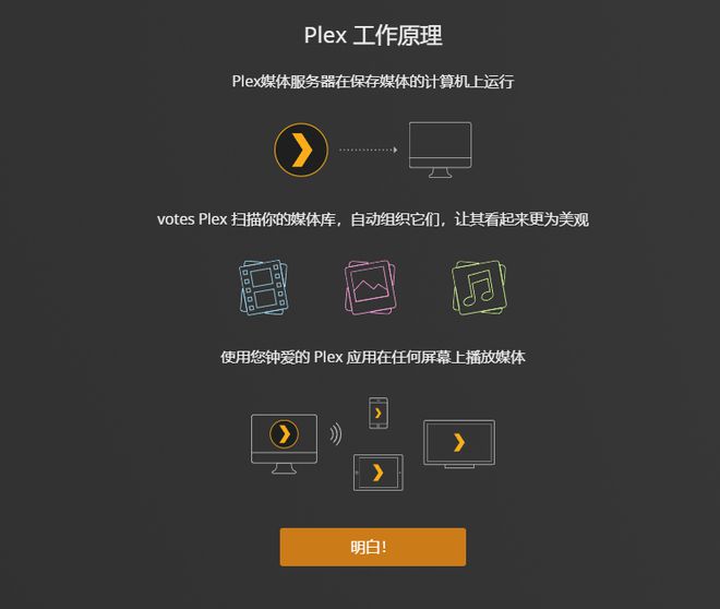 1,你需要选择一个影音服务端,比如plex,emby,infuse等等,它们的侧重点不同,需要根据需要选择▼