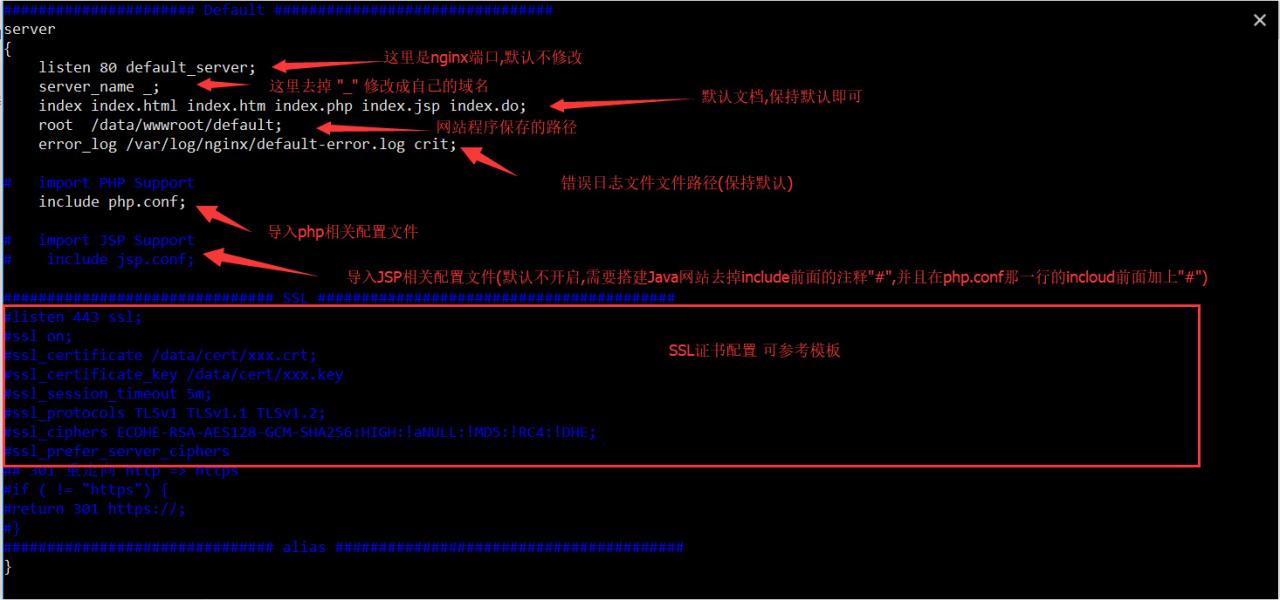 vim /usr/local/nginx/conf/nginx.conf # 编辑主配置文件# 测试Nginx配置是否正确命令,先进入主程序的安装目录
