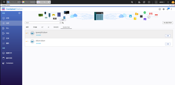 3. 打开Container Station,点击创建模块搜索yliyun镜像文件。