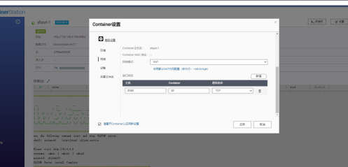5. 点击高级设置,网络设置本机8088端口映射docker容器内80端口。