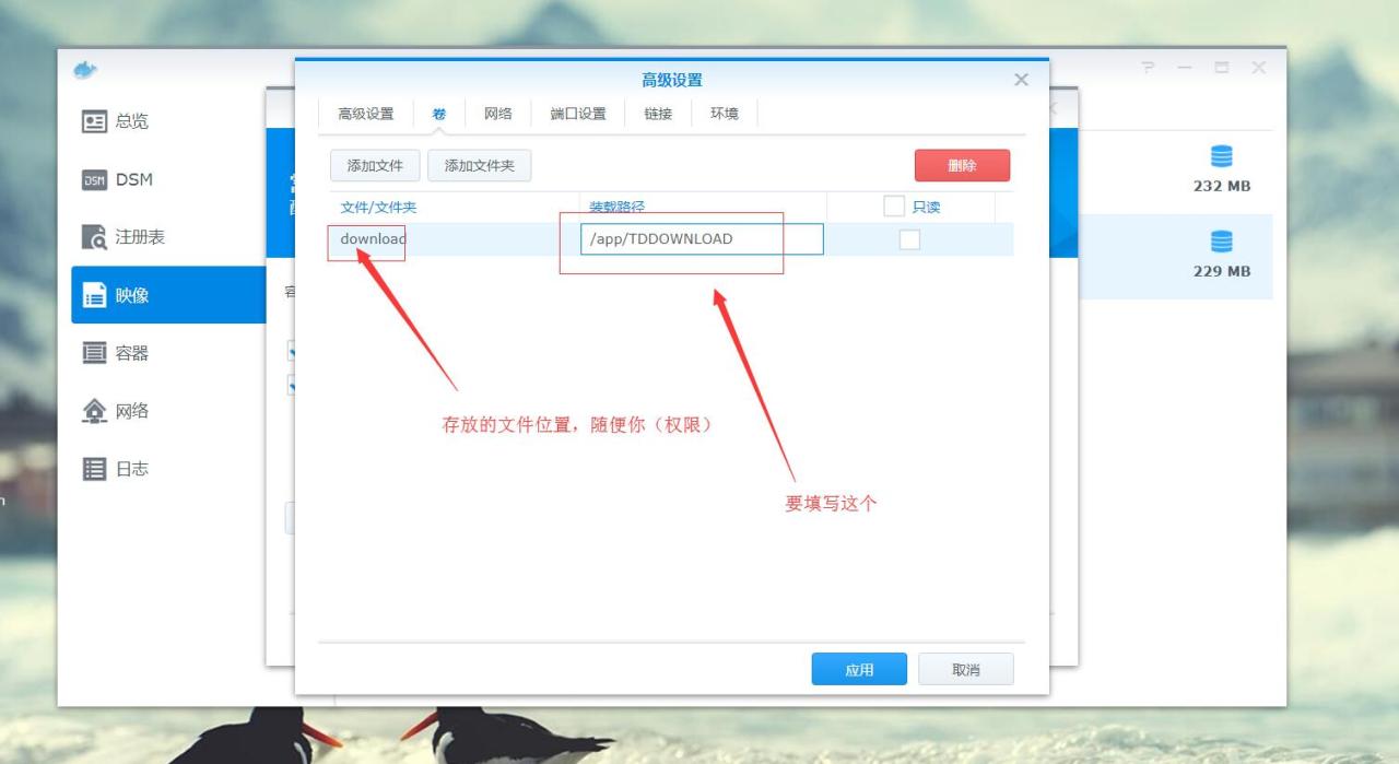 装载路径设置为 /TDdownload,去掉默认勾选的只读。