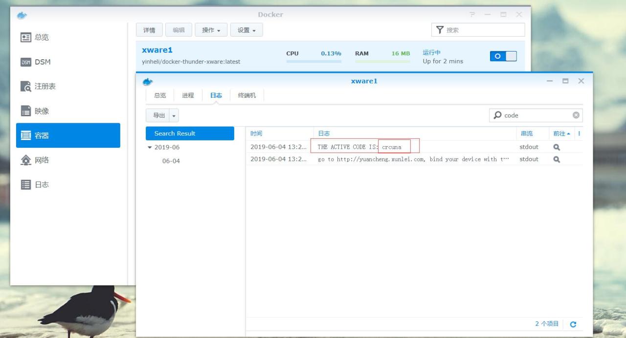 tip:如果运行了容器查看日志发现没有code激活码的话,多重启容器,一直重启到有去!可以是因为容器在墙外,访问的速度慢的可能性,导致了获取激活码有点久!具体原因还未知!