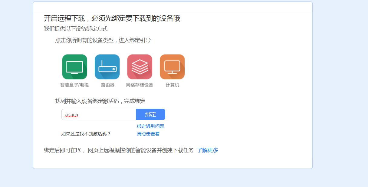 6.最后就是去迅雷远程绑定激活码了,网址 http://yuancheng.xunlei.com 。