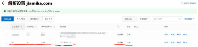 10、在阿里云域名界面添加一条解析,其中的记录值可以添加现在对应的动态公网ip地址