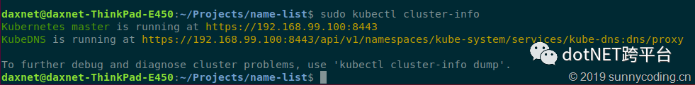 然后,使用kubectl cluster-info命令以获得Node IP: