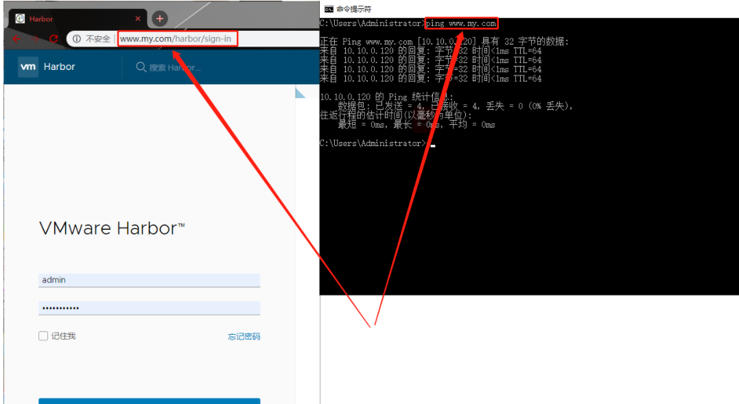 ping harbor私服的域名并访问,发现可以ping通且可以正常访问