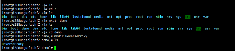 我们在宿主机上面创建一个demo目录,然后在创建一个ReverseProxy目录,把发布后的项目上传到ReverseProxy目录下面