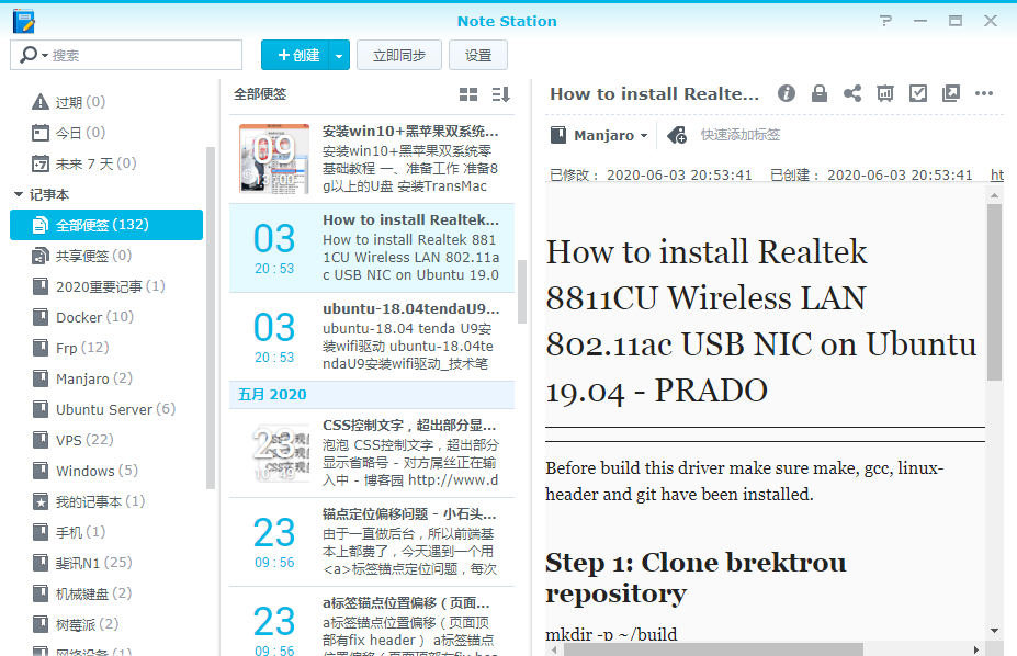 Note Station:这也是我常使用的一个套件,作为笔记软件再合适不过了,在Chrome上,可以说使用它的插件Synology Web Clipper,遇到需要记录的网页文章,一键保存在Note Station上,实在是太方便了,它同样有手机客户端,方便不同平台切换和记录。