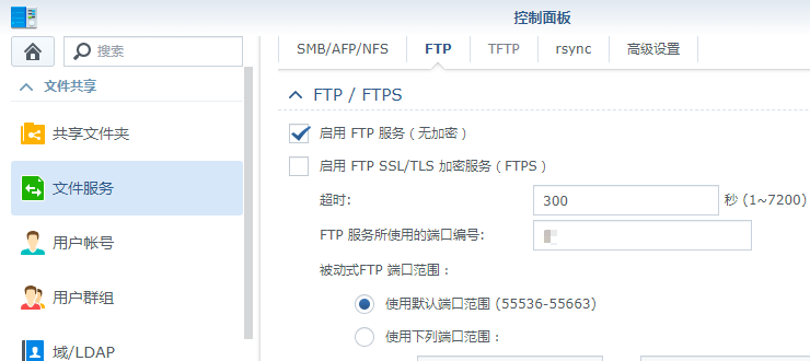 宝塔是可以把网站数据自动同步到群晖上,前提是群晖需要开启FTP服务,我是新增一个账号专门用来同步网站数据的,而这个账号也只有访问homes文件夹和FTP的权限。