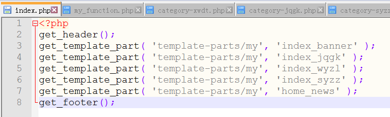 5 建立 头部 尾部 分类模板 首页模板 用 get_template_part( 'template-parts/my', 'home_news' ); 进行分部分引入