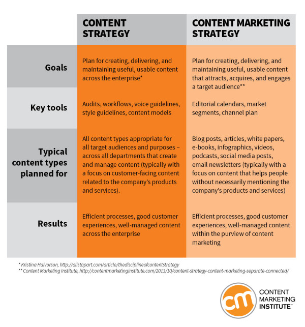 我只是想把它放在那里:我将内容营销策略视为内容策略的一个子学科。 让我们首先澄清这两个术语之间的区别:
