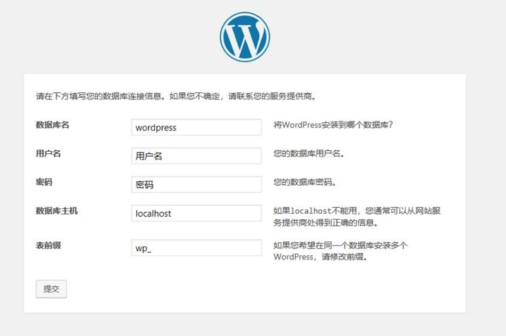 - “WORDPRESS_DB_NAME”: 数据库的表名,不需要修改,用默认的”wordpress"就行