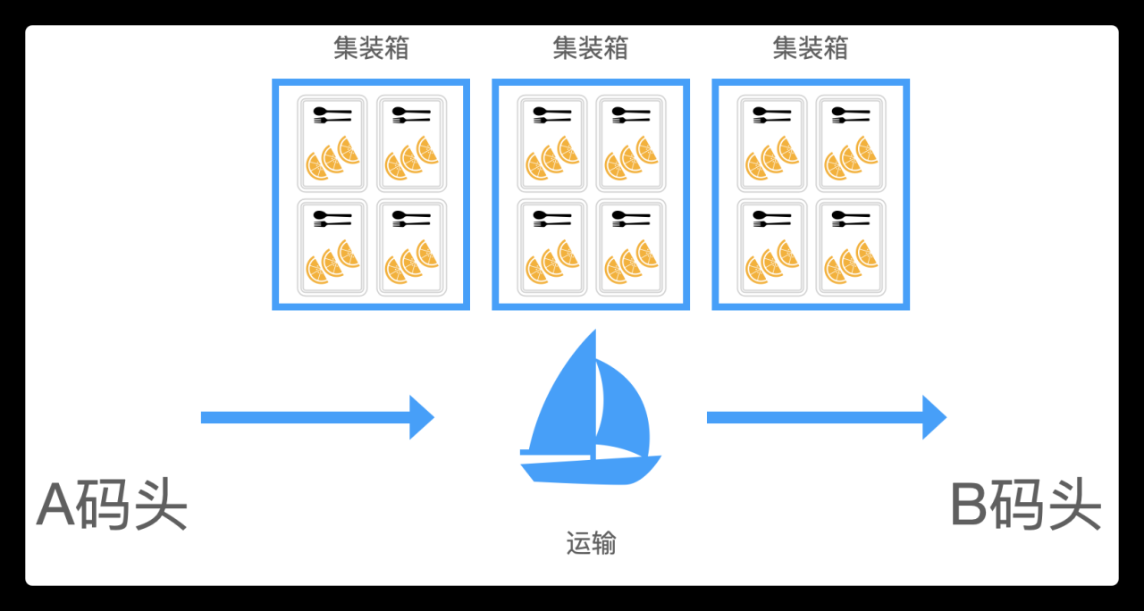 举个例子:这就像码头上的集装箱运载货物一样,把货物(应用程序)打包后放在一个集装箱里,假设这个货物是一箱罐头和食用所需的勺子与叉子(依赖环境),通过货轮,货物可以很方便地从一个码头(假设是 Ubuntu 环境)运送到另一个码头(假设是 Centos环境)。在运输期间,货物不会受到任何的损坏(程序文件没有丢失和损坏),所以在另一个码头卸货后,依然可以很好地食用(正常启动)。