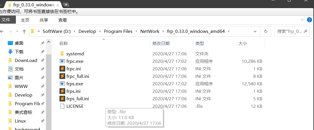 2、将frp_0.33.0_windows_amd64.zip解压至任意目录