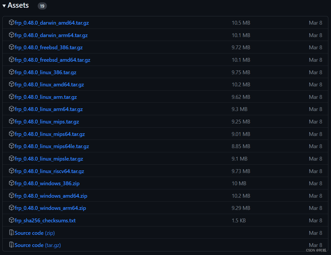 方式二、在github项目中下载(包含更多的操作系统/处理器版本)GitHub – fatedier/frp: A fast reverse proxy to help you expose a local server behind a NAT or firewall to the internet.