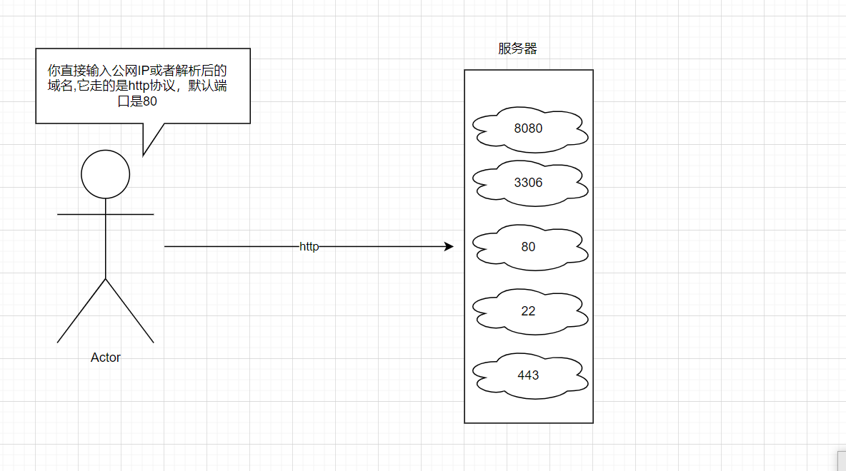 当你直接输入你的公网ip或者解析完后的域名它走的是http协议默认端口是80,你想要实现域名/公网IP直接访问某个端口是行不通的,除非在域名/公网IP+端口,这很显然不是我们要的效果。