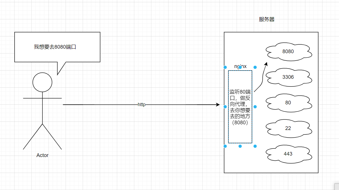 这个有点类似于早期的电话你不能直接打给某人只能打到一个站点,你想要联系某个人必须叫接线员帮你转接给某人,而nginx可以充当那个接线员角色。你可以通过nginx的反向代理去你想要去的地方。